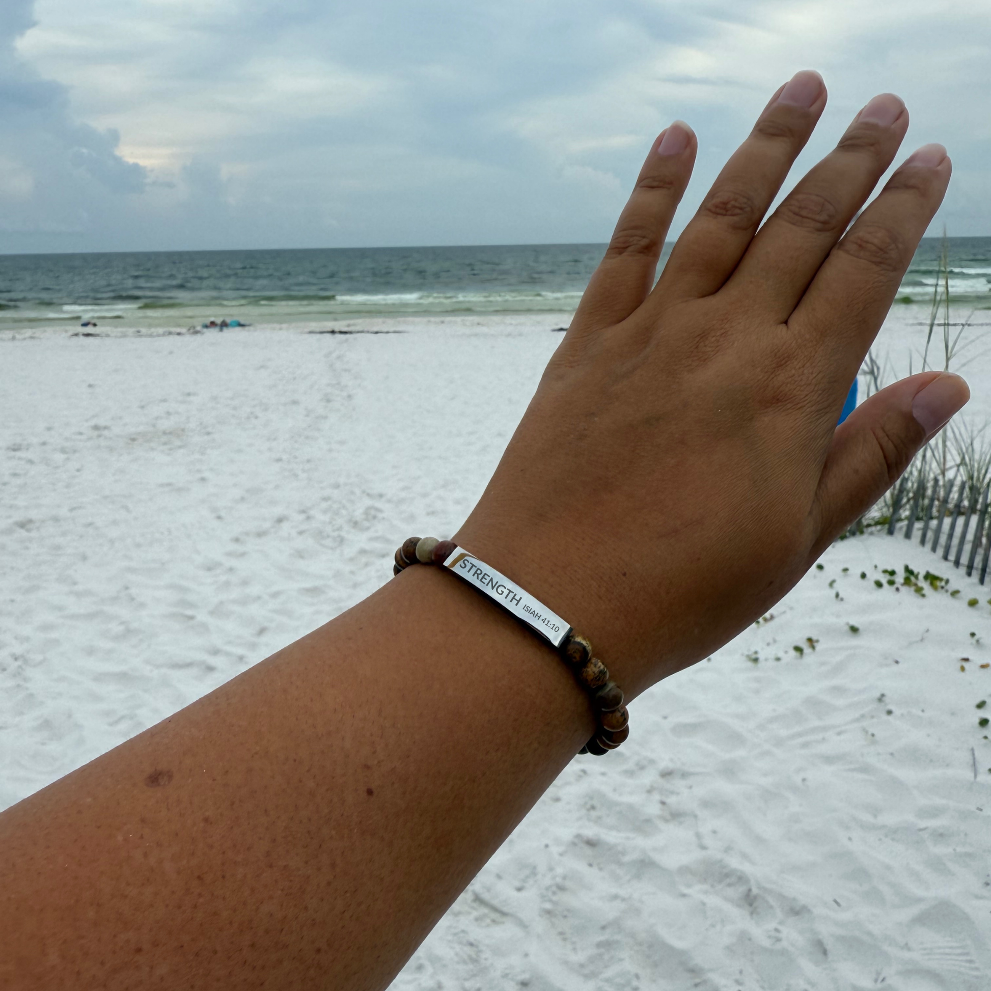 When you rest in the strength of God’s power.. you will experience and accomplish the supernatural. Wearing this bracelet reminds you each day that you are not alone and you have no need to fear. It represents God’s strength when you feel weak or unsure how to conquer your next step.