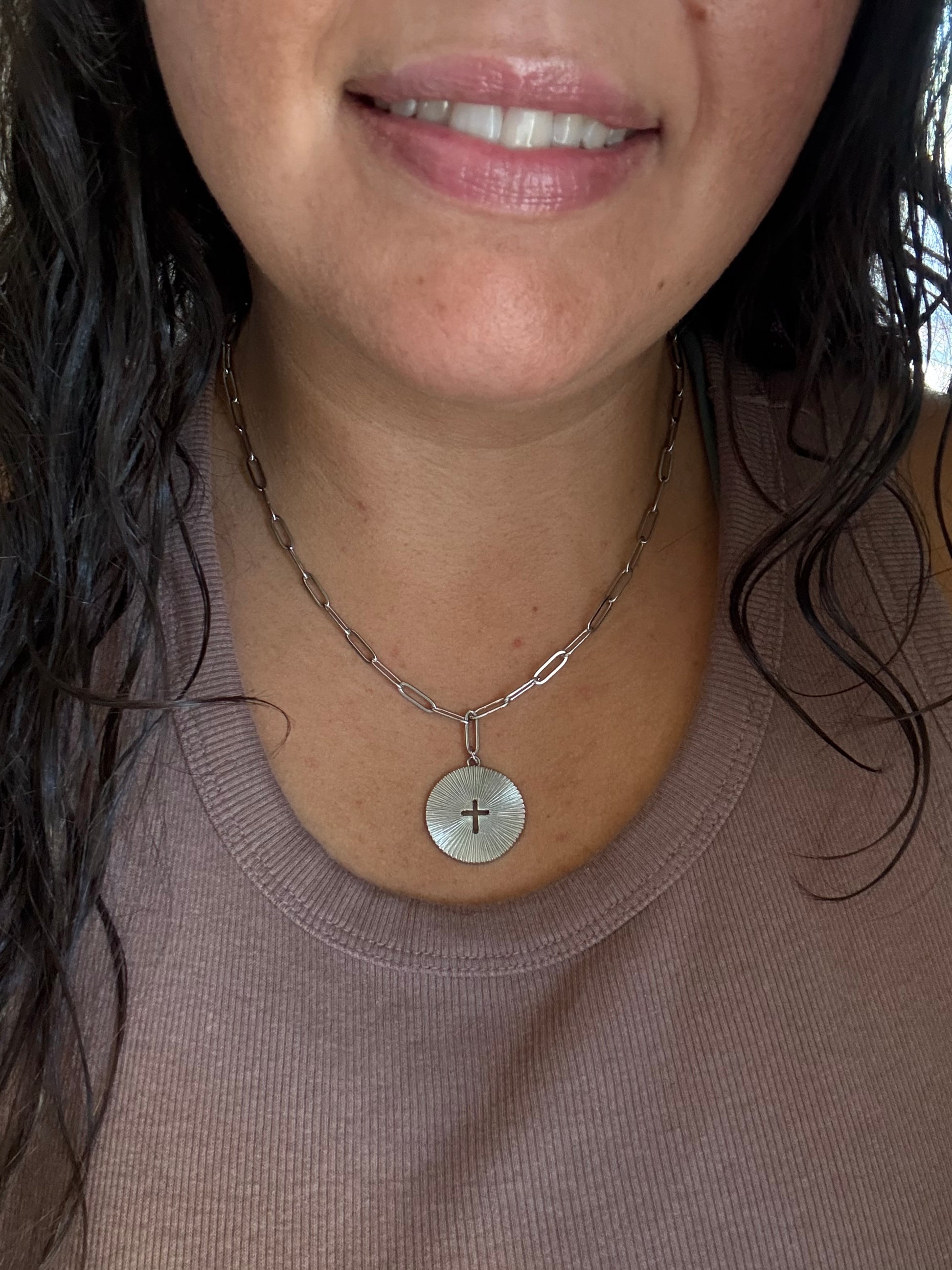 NEW Sunburst Cross Paperclip Necklace